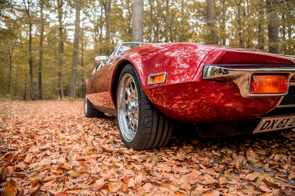 Heines Pantera er blevet gennem renoveret og står utrolig flot i de mørkere efterårsfarver. En af de ting der gør Pantera til en unik bil er brugen af reservedele fra andre biler. Sæderne og ratstammen stammer fra en Ford Cabri, vippekontakterne i kabine kommer fra en Ford Cortina mark 1, baglygterne går igen hos Masaratti og Alfa Romeo og sidespejlene er fra en 1967 Ford Mustang, da det var det, der var på lager hos Mercurey og Lincoln dealerne i USA. Alle disse stumper og dele gør at Pantera bliver en virkelig unik og sjov bil, hvor der er mulighed for at skifte og ændre nogle ting, hvis man ikke er helt tilfreds med det uden det ødelægger bilens design. Vi sætter os ned i bilen, og bliver med det samme kastet tilbage til 70érnes racerbaner.
